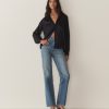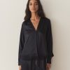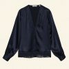 Reimagined in a buttery silk satin with fringe at the hem, the ‘70s-inspired Candace Top features a plunging V-neckline, a drapey cut and generous full-length sleeves with self-covered buttons at the cuffs. Three hidden snap closures fasten at the front.