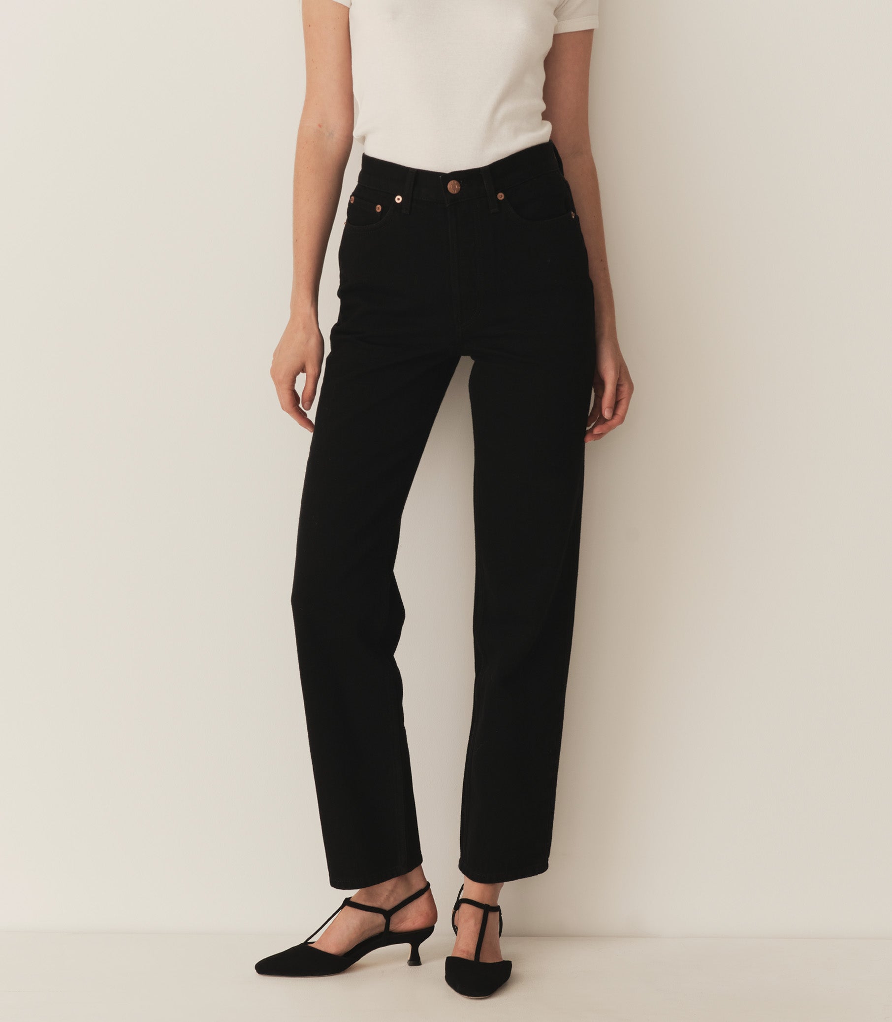 Crafted from cotton denim, our forever-favorite Diana Jean features a button fly, a high waist, and a classic straight leg—plus pointed back pockets and classic front pockets.nOur Los Angeles wash house partner uses a laser technique to achieve our washes, which has a lower chemical and water footprint and provides a safer working environment than conventional denim washing processes.