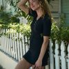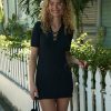 In a stretchy, lightweight linen blend with allover ribbing, the Faybelle Dress is a fitted mini dress with short sleeves detailed with delicate pointelle. The plunging V-neckline is laced with a tie, allowing you to cinch as much as you’d like.
