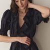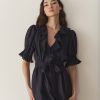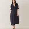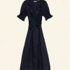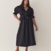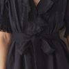 Our best-selling Henri Top reimagined as an easy-wearing midi dress, the Harriette is crafted in a lightweight ramie, featuring short puffed sleeves, a plunging V-neckline framed with cascading lace-trimmed ruffles and delicate clustered pintucks at the yoke, back, and short puffed sleeves. A line of hidden starburst buttons extend down the front, giving way to an ankle-grazing A-line skirt, and a detachable belt allows you to cinch the waist. For an antique-inspired finishing touch, an embroidered “D” at the left chest nods to Victorian-era monograms.