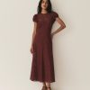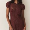 In intricate allover floral lace, the ‘30s-inspired Katarina Dress features a high neck and short puffed sleeves trimmed with contrast piping, pointed underbust seams for structure, and a detachable viscose slip. A fitted waist with an invisible side zipper gives way to an ankle-grazing A-line skirt, while a single button with a keyhole detail fastens at the back of the neck.