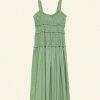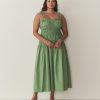 Crafted from crisp organic cotton poplin, the Marianne Dress features a square neckline, a gathered bust, and a fitted bodice framed with petite ruffles. A third gathered panel finishes just below the hips, flaring out into a full-length skirt, while elastic lends give to the straps, bust, and waist.