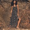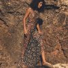 An early season favorite of both Margaret and Katherine, the Mireille Dress is crafted from a sheer tulle with allover ‘30s-inspired embroidered florals, featuring a high cowl neckline, criss-cross straps at the open back, and a floor-sweeping skirt with seaming details. The detachable viscose slip can be worn underneath for more coverage.