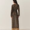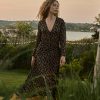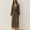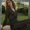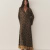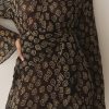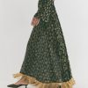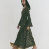Crafted from silk crinkle chiffon, the DÔEN Heirloom Monique Dress is an extra-special keepsake and favorite of our co-founders, Margaret and Katherine. With a ‘70s-inspired caftan silhouette, this treasure is graced with our Joni Floral, and each floral motif is finished with intricate gold lamé embroidery. Dramatic flared sleeves fall to the wrist while stitching at the center front neckline lends shape. A floor-sweeping hemline is trimmed with hand-beaded fringe. A matching belt can be tied to cinch the waist—or worn as a scarf.