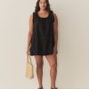 Tailored in a soft midweight linen, the Monroe Dress is a ‘60s-inspired mini-length shift dress. It features a body-skimming shift silhouette with an invisible side zipper and a wide square sailor-style collar. A single self-covered button with a keyhole detail fastens at the back of the neck.