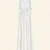 Rendered in buttery silk satin, the Odelina Dress takes cues from 1930s silhouettes. Intricate lace trims the high neckline and sleeve openings, while sheer lace insets at the waist and down the back offer a glimpse of skin. A fitted bodice with a side seam zipper flows into an ankle-grazing bias-cut skirt.