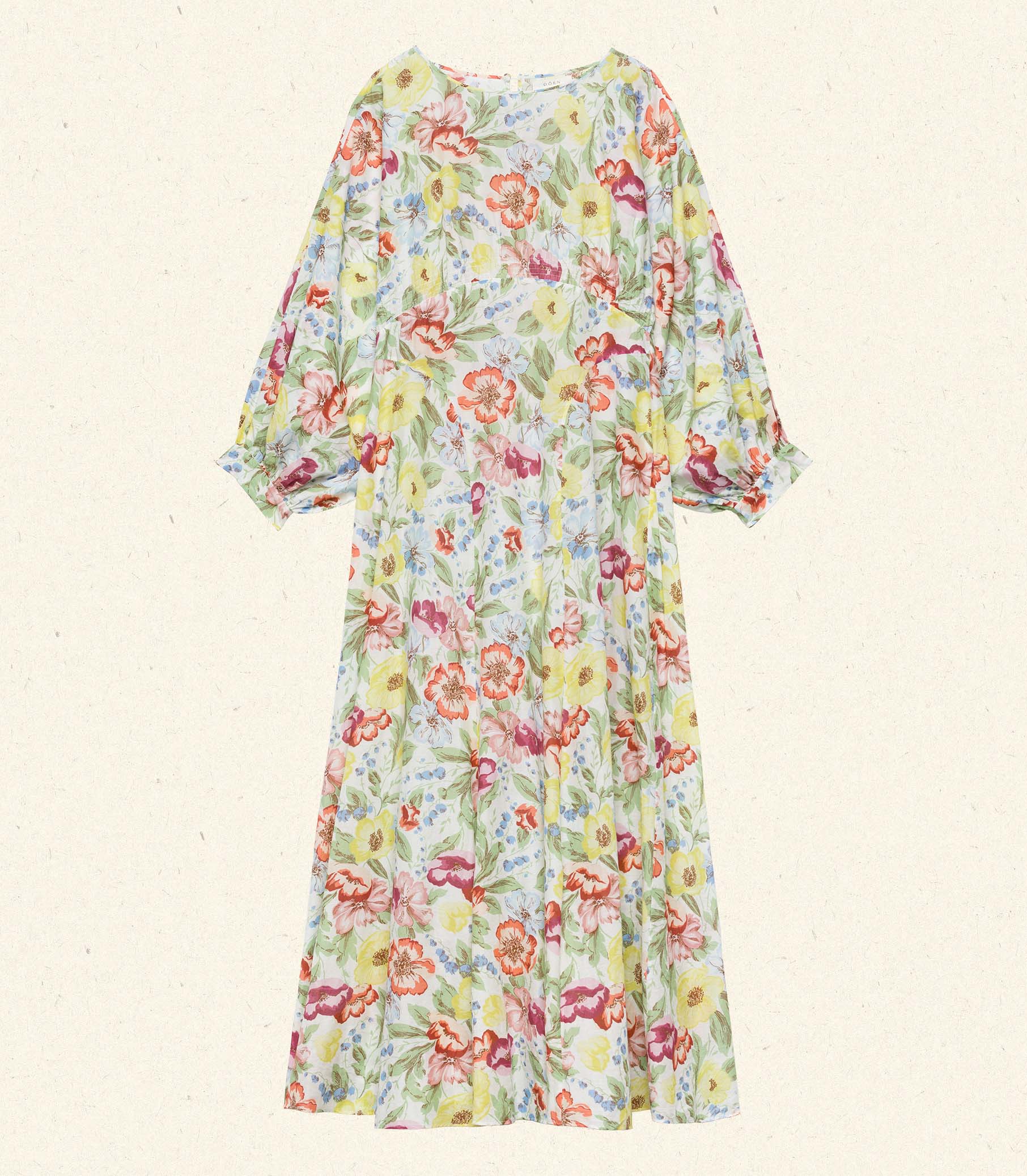 Reimagined for Spring in the softest organic cotton voile adorned with our colorful Anemone Bloom, the ‘30s-inspired Oliana Dress features a subtly shirred bust, voluminous elasticized sleeves, and an empire waist that gives way to an ankle-grazing skirt with princess seams. A single button with a keyhole detail fastens at the back of the neck.