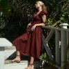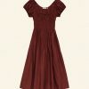 In crisp 100% organic cotton poplin, the Quinn Dress—a Favorite Character— features a scoop neckline with an adjustable tie and a playful keyhole detail, a gathered bust, and short puffed sleeves. A fitted bodice with elasticized smocking gives way to a midi-length A-line skirt.