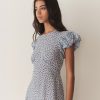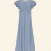 Crafted in a soft, lightweight organic cotton voile and adorned with our Cornflower Hillside Bloom, the Romina features a high neck and short puffed sleeves. The bodice is detailed with pointed underbust seams for structure, giving way to an ankle-grazing bias-cut skirt, and a delicate grosgrain ribbon ties at the back.
