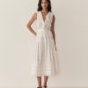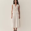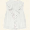 In soft, lightweight organic cotton voile, the Hilda is a sleeveless rendition of our best-selling Henri Top. It features a plunging V-neckline adorned with cascading lace-trimmed ruffles that extend down the bodice. Clustered pintucks lend texture to the yoke and back, while a line of hidden starburst buttons extends down the front.