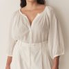 In the softest blend of organic cotton and viscose, the Jiana Top features a breezy silhouette and generous bracelet-length sleeves. Mother-of-pearl buttons extend down the center front. Wear it loose, or tuck it into your favorite high-waisted jeans.