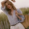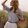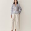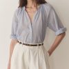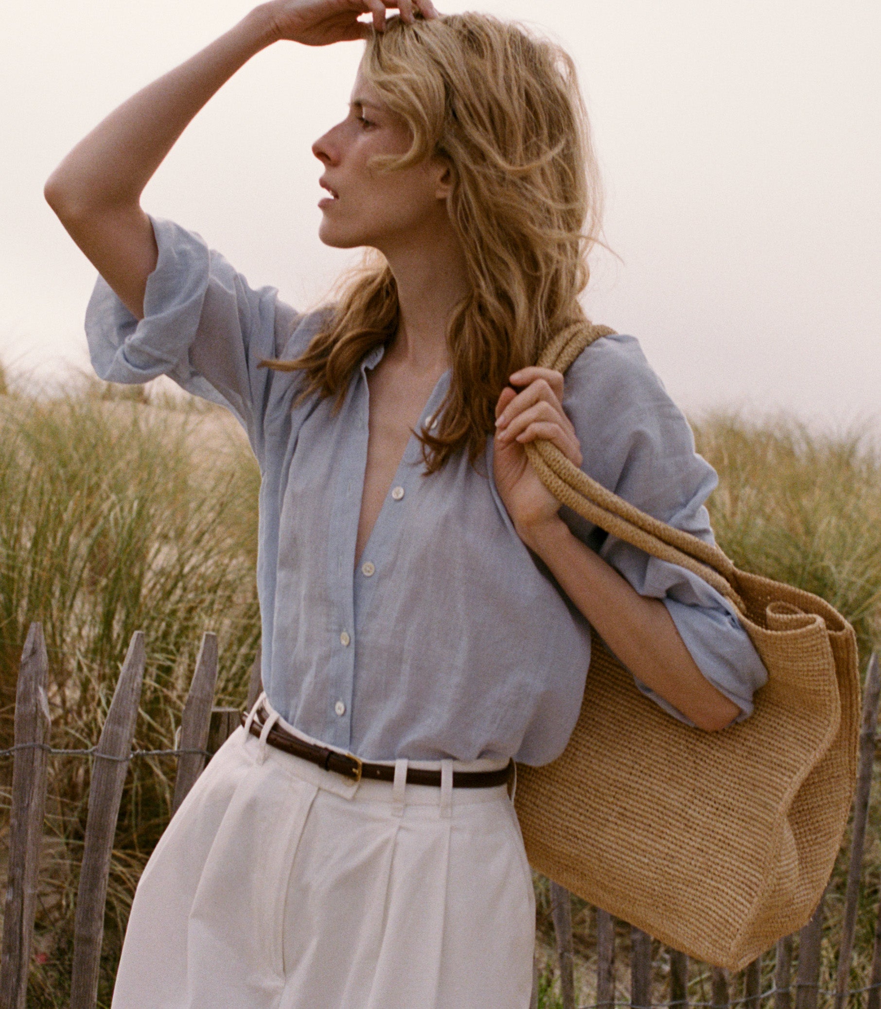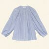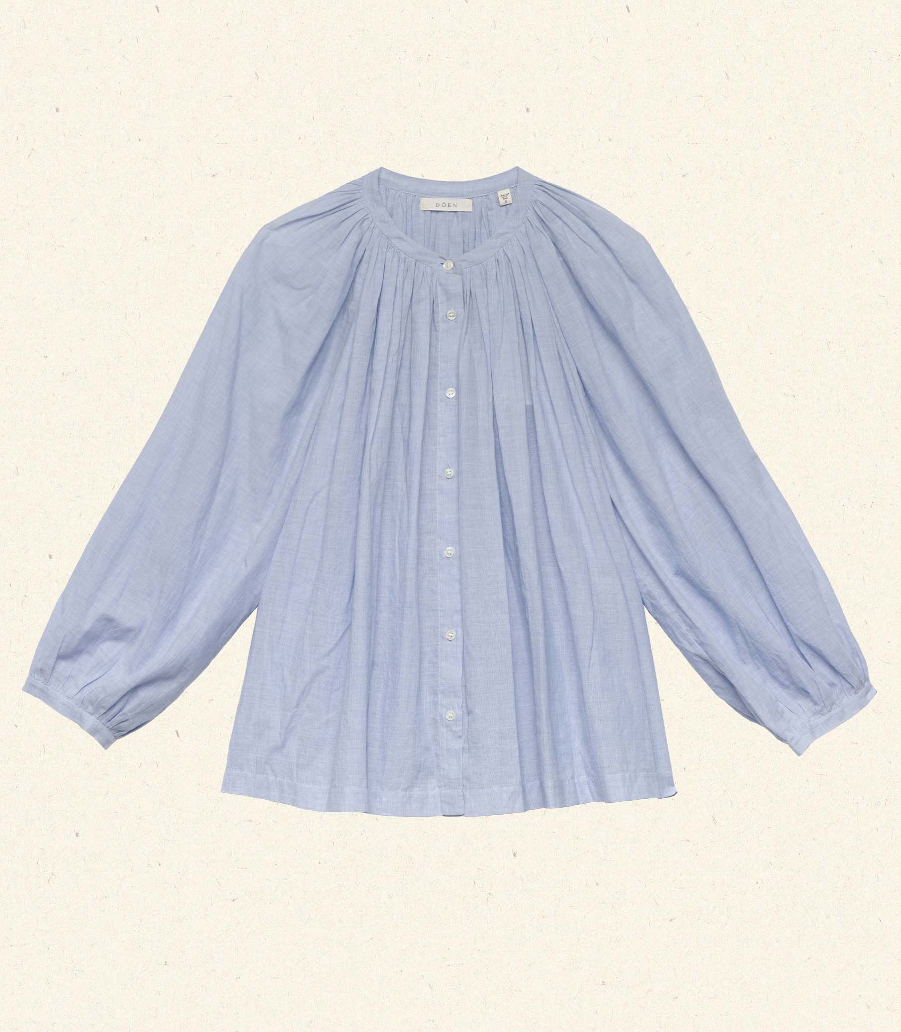 Rendered in a crisp cotton, we’re excited to introduce the Jonie Top, which takes cues from our Jane Blouse—one of the earliest styles in our collection. It features a billowy silhouette, full-length raglan sleeves, and mother-of-pearl buttons. Shirring along the neckline and shoulders lends diaphanous volume. Wear it loose, or tuck it into your favorite high-waisted jeans.