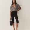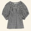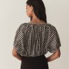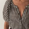 Crafted from a soft, lightweight organic cotton voile, the June Top is a short-sleeved take on our beloved Jane Blouse. Now refreshed in a ‘50s-inspired Noir Greta Gingham, the June features a gathered scoop neckline, full raglan sleeves, and a relaxed, breezy cut. A line of mother-of-pearl buttons extends down the center front. Wear it loose, or tuck it into your favorite high-waisted jeans or shorts.
