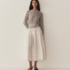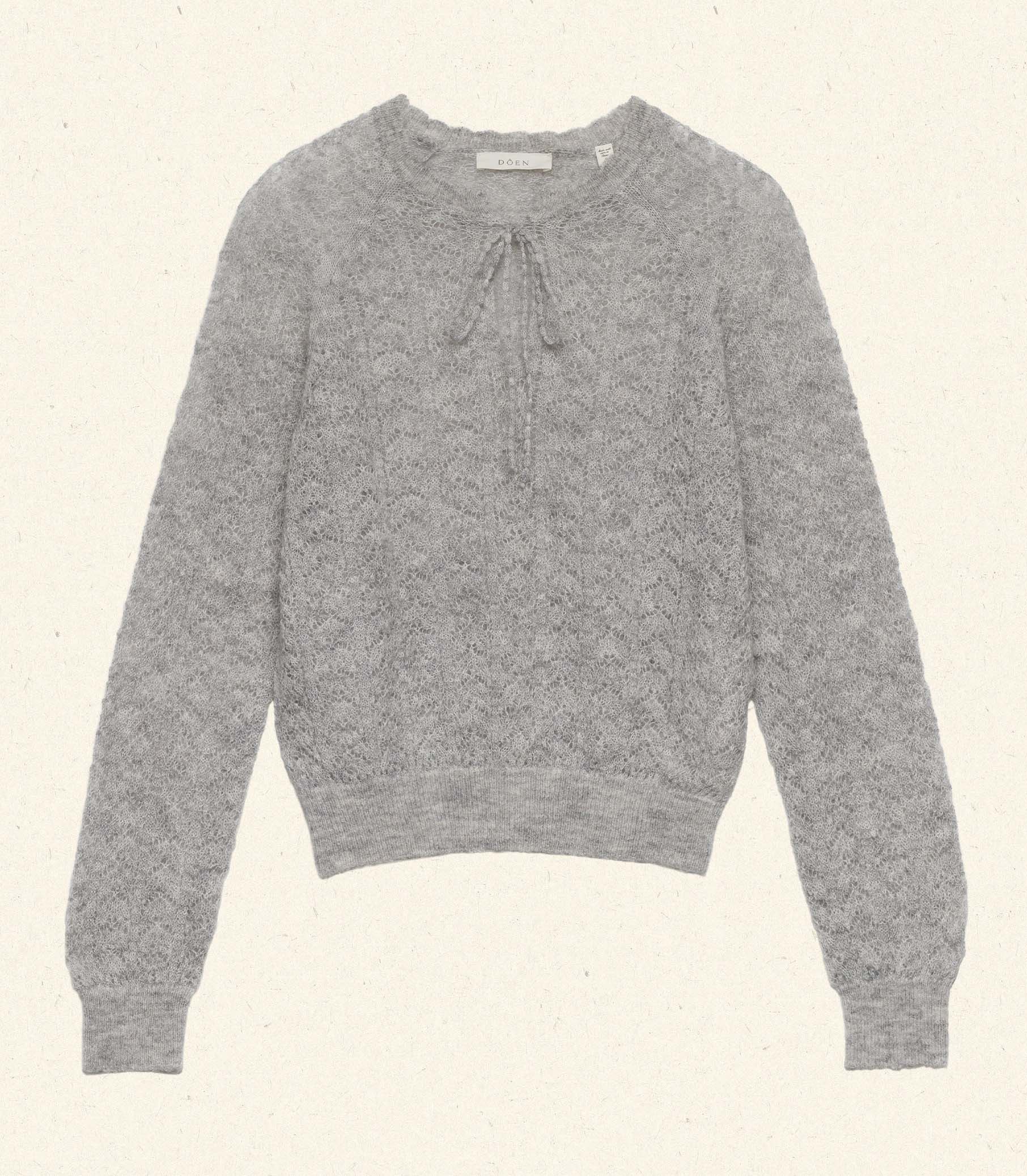 nTaking cues from ‘30s knitwear, the Ophira Sweater is crafted from a semi-sheer, lightweight wool-alpaca blend with an intricate allover pointelle design, featuring a classic crew neck, full-length raglan sleeves, and an antique-inspired delicate tie detail at the neckline.