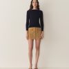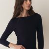 In soft, lightweight extra-fine merino wool, the ‘60s-inspired Silvia Sweater features a bateau neckline, a fitted silhouette, bracelet-length sleeves, and ribbing at the cuffs and hem.