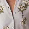 Inspired by knits from the ‘50s, the DÔEN Heirloom Teresa Cardigan—made from the softest blend of wool and cashmere with a satin lining—features skillfully hand-embroidered lily of the valley flowers, satin piping at the sleeve opening, and satin covered dome buttons.