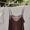 Crafted from 100% viscose, the DÔEN Long Deep V-Neck Slip is the perfect extra-thin layer for any dress when you want a bit more coverage. The V-neck complements any of our lower-cut or button-front dresses, while the length pairs beautifully with longer styles. Featuring adjustable straps and a sheer fabrication, this slip is a closet essential.