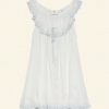 Inspired by our shared love of escaping into the pages of a really good book, we are excited to introduce our limited-edition Lillian Nightgown, designed in collaboration with online book club Library Science, co-founded by Kaia Gerber and Alyssa Reeder. nDreamt up with slow mornings and idyll afternoons in mind, this organic cotton-voile keepsake features a scoop neckline adorned with a scallop-edge ruffle and a grosgrain ribbon. Delicate mother-of-pearl buttons extend down the breezy bodice, and the playful mini hemline is detailed with a custom-embroidered “LS” monogram and finishes in a scallop-edge ruffle.nWe are honored to donate 20% of the profits from this style to our longtime partner, Room to Read, an organization that promotes literacy and gender equality through education, by helping children in historically low-income communities develop literacy skills and a habit of reading.