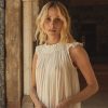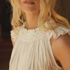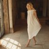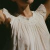 Crafted from the softest 100% organic cotton voile, the Lovisa Nightgown is a beloved Favorite Character we return to again and again. A high neckline graced with stretchy smocking, petite ruffles, and intricate hand embroidery is framed with delicate flutter sleeves, giving way to a loose, breezy silhouette and an ankle-grazing skirt.