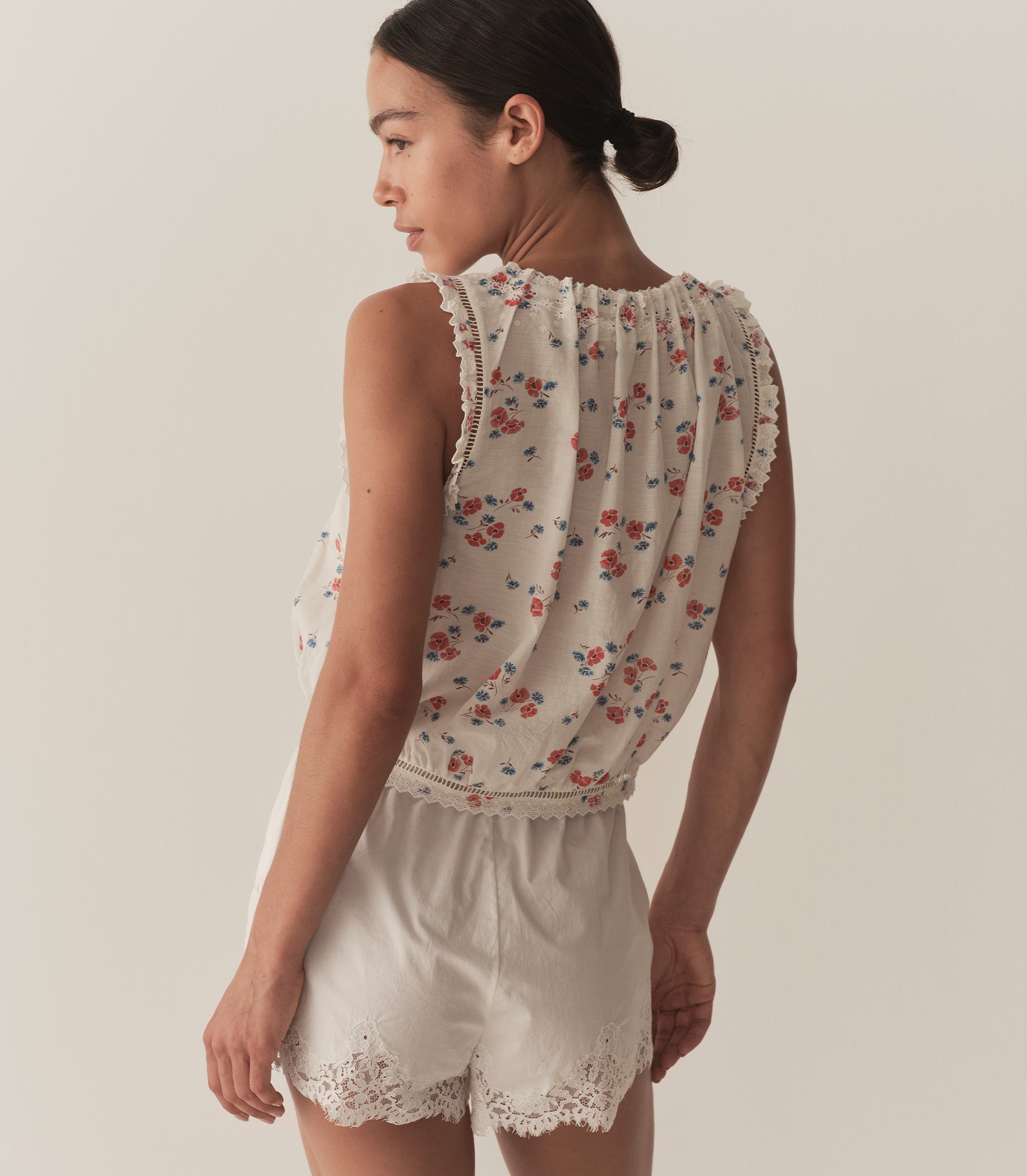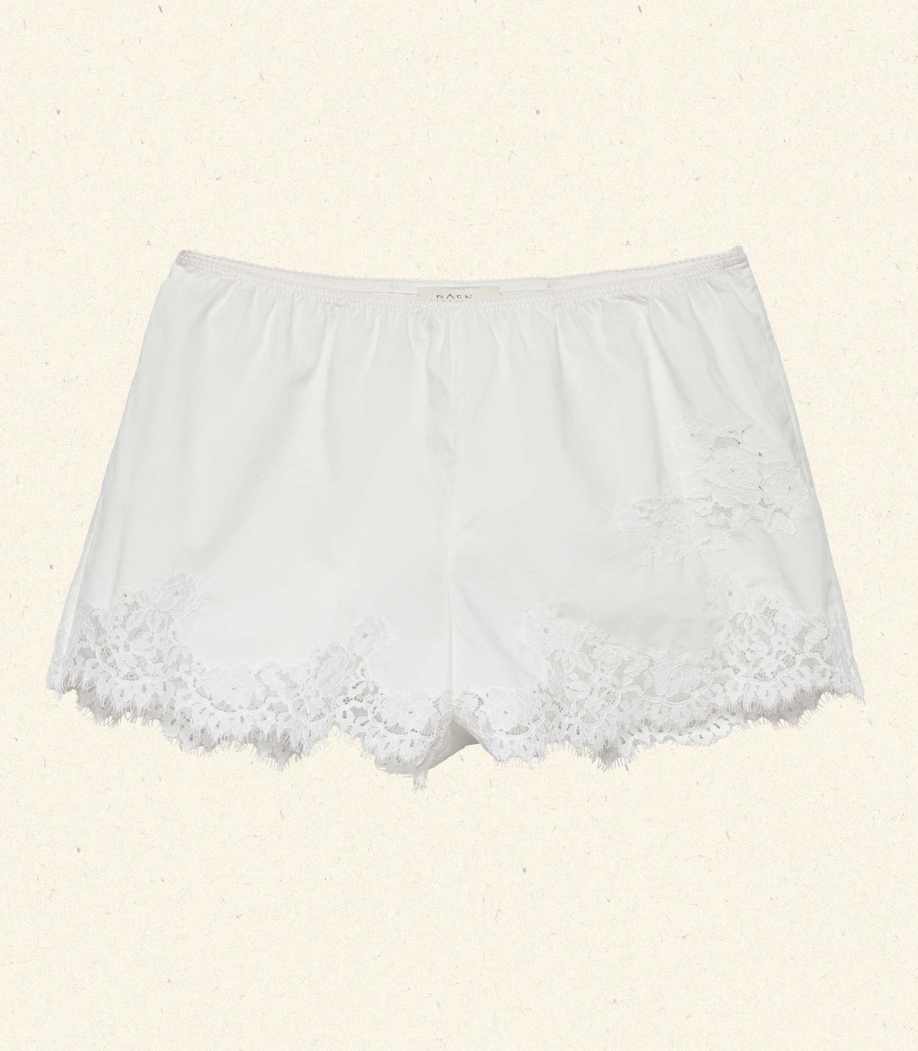 A summery take on our ‘30s-inspired Iona Short, the Ivette is an easy pull-on style crafted from crisp organic cotton poplin—and has quickly become a favorite of our styling team. It features elastic scallop detailing at the waist and intricate floral lace insets at the hip and hems.