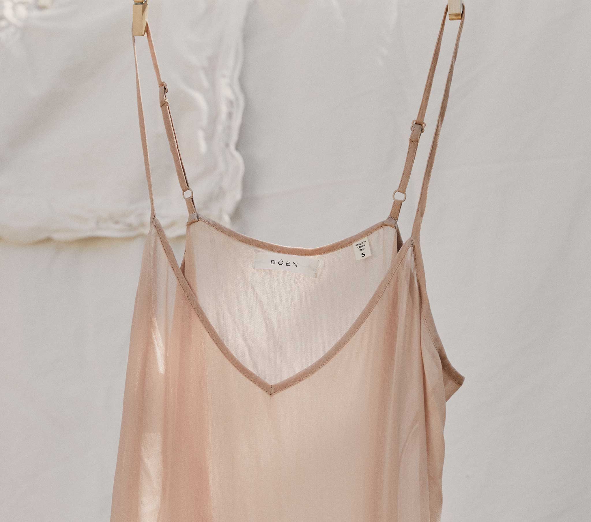 Crafted from 100% viscose, the DÔEN Short Deep V-Neck Slip is the perfect extra-thin layer for any dress when you want a bit more coverage. The V-neck complements any of our lower-cut or button-front dresses, while the length works with any of our short styles or layers effortlessly under longer dresses. Featuring adjustable straps and a sheer fabrication, this slip is a closet essential.