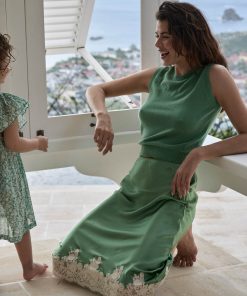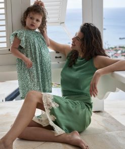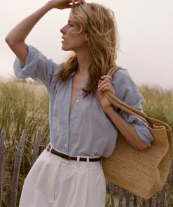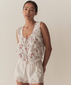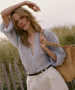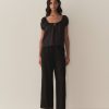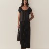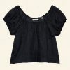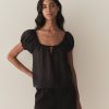 The Solina Top is crafted from lightweight ramie, featuring a breezy silhouette, short puffed sleeves, and a scoop neckline with an adjustable tie and playful keyhole detail.