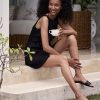 Made in Italy from an embossed faux croc leather, the ‘60s-inspired Angelica Sandal features a thick toe strap, a soft leather lining, and a low heel. n